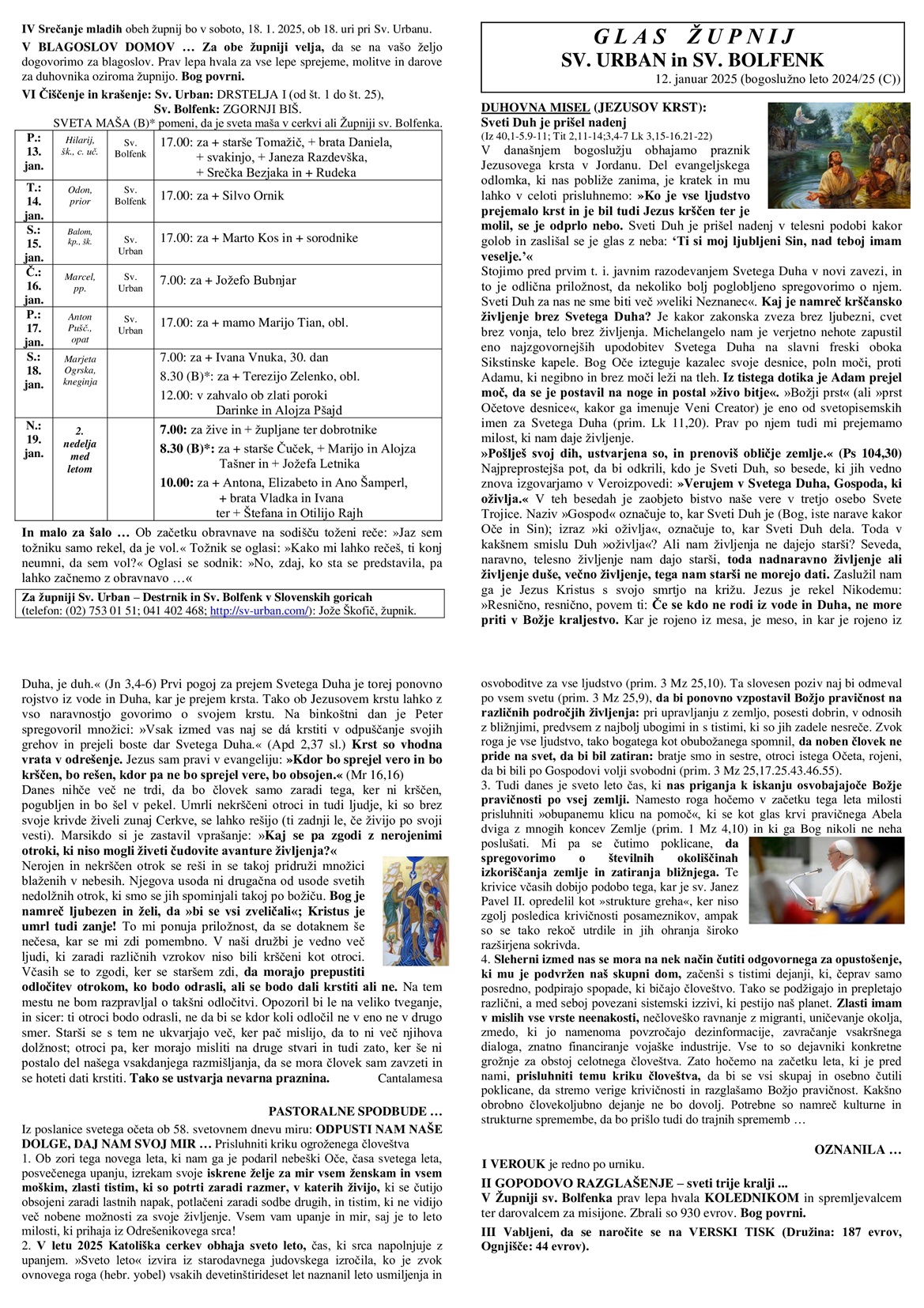 1. nedelja po Božiču - 2025
